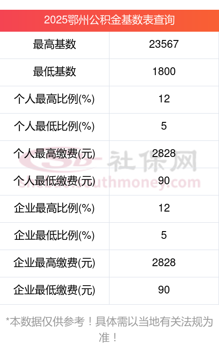 2025鄂州公积金缴存额度=公积金缴存基数乘以缴存比例。