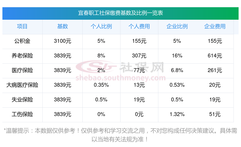 宜春职工社保缴费多少钱?宜春职工社保缴费基数最新参考为:3579.00,具体如下: