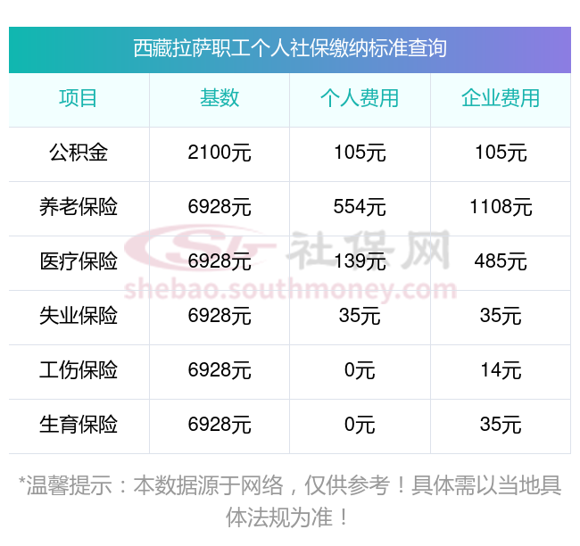 一、据新社通app获悉:西藏拉萨 企业职工社保缴费基数为:3579.00元,西藏拉萨社保缴费基数2025年最新标准如下:
