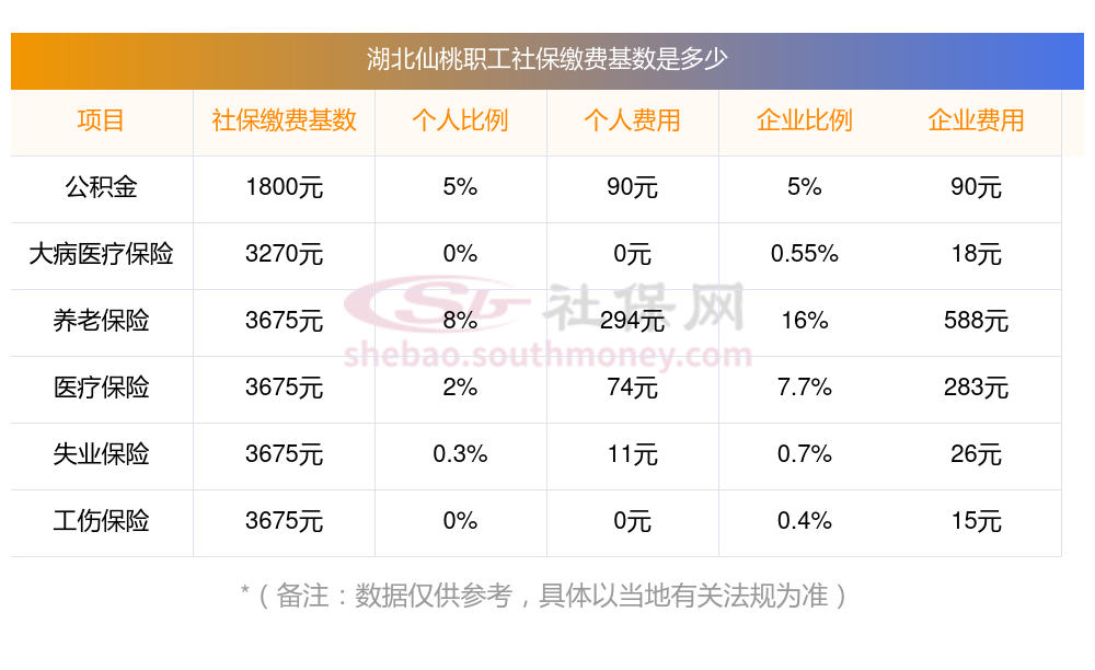 二、湖北仙桃职工和公司社保各交多少钱?职工社保缴费多少钱一个月?