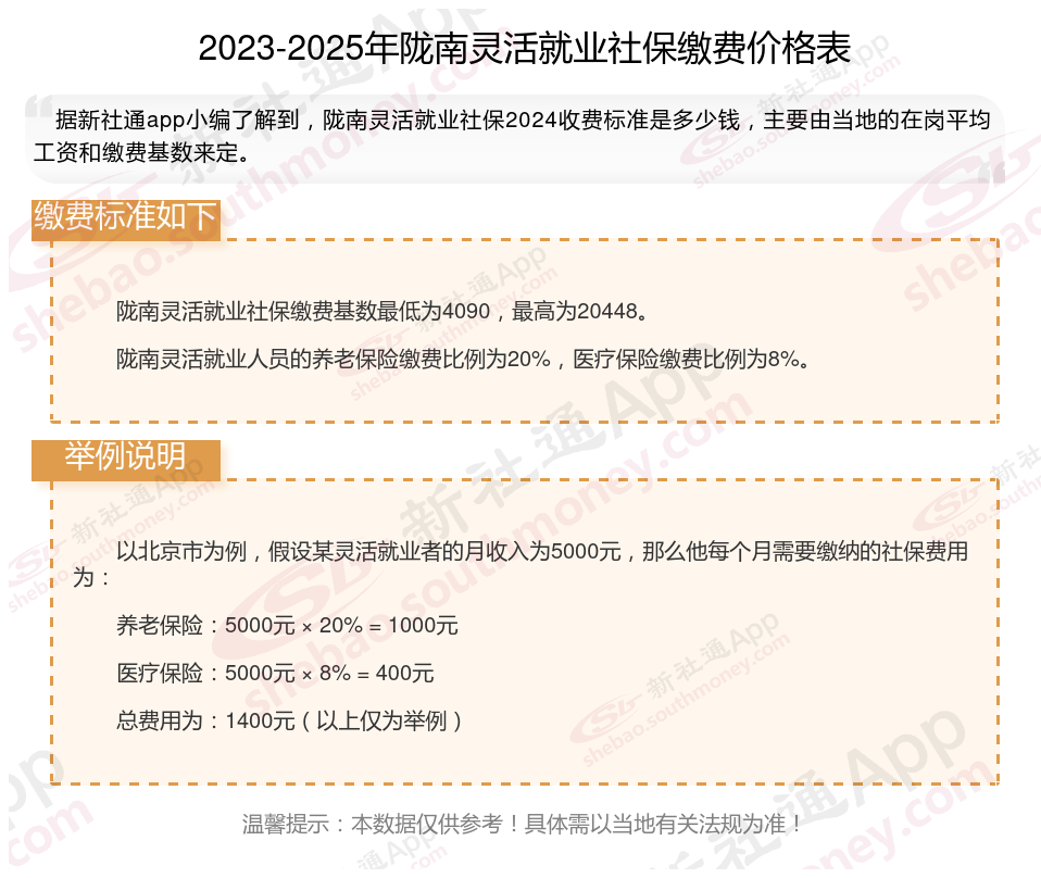 以上就是陇南灵活就业社保缴费的全部内容,数据及内容供参考!希望对你有帮助,欢迎关注新社通解锁更多社保专业资讯。
