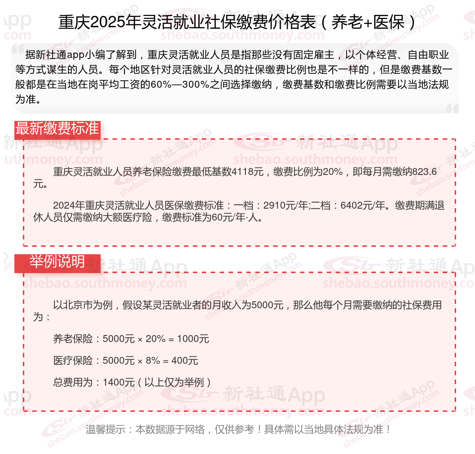 以上就是重庆灵活就业社保缴费的全部内容,数据及内容供参考!希望对你有帮助,欢迎关注新社通解锁更多社保专业资讯。