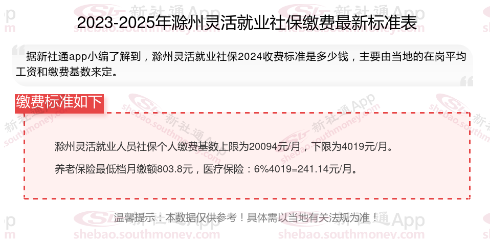 二、滁州2024年灵活就业社保缴费基数及比例最新消息