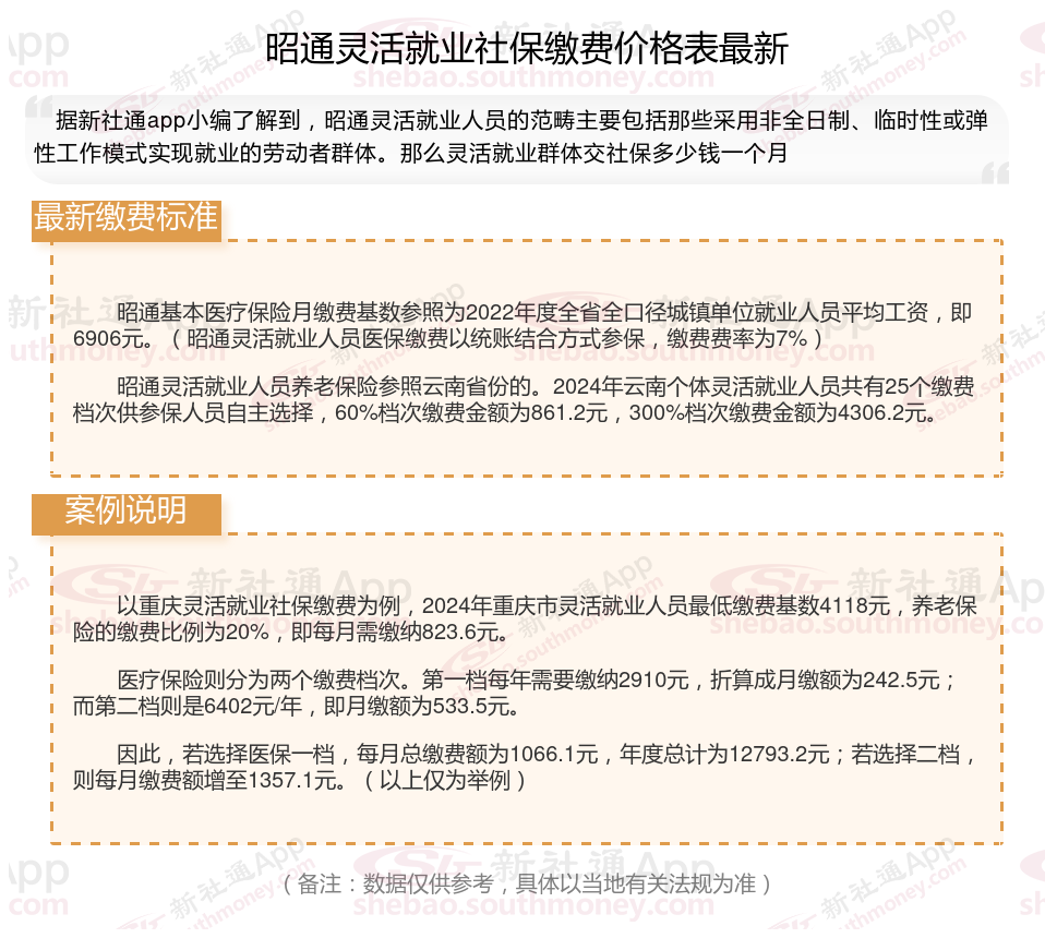 一、2025年昭通灵活就业社保缴费标准表 2025年昭通灵活就业社保多少钱一个月?