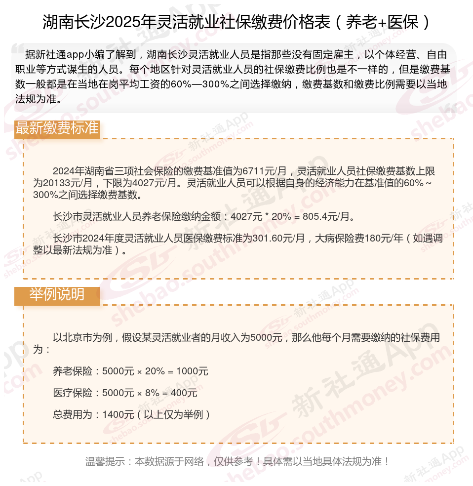 2025年湖南长沙灵活就业人员社保需要交多少钱?随着经济社会的不断发展,灵活就业群体也日益壮大,其社保缴费问题也愈发受到关注。接下来随新社通APP小编一起来看看灵活就业群体社保缴费问题吧。