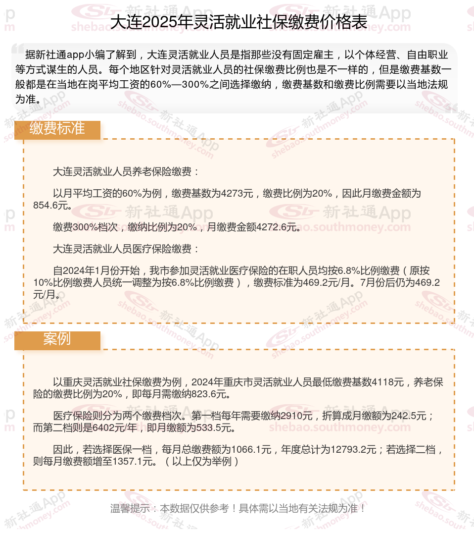一、2024-2025年大连灵活就业社保缴费标准表 大连灵活就业社保多少钱一个月?