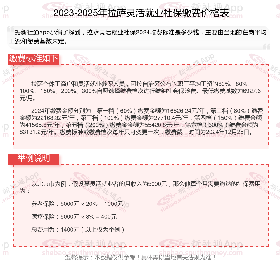 三、2025年拉萨灵活就业社保缴费标准,最新如下: