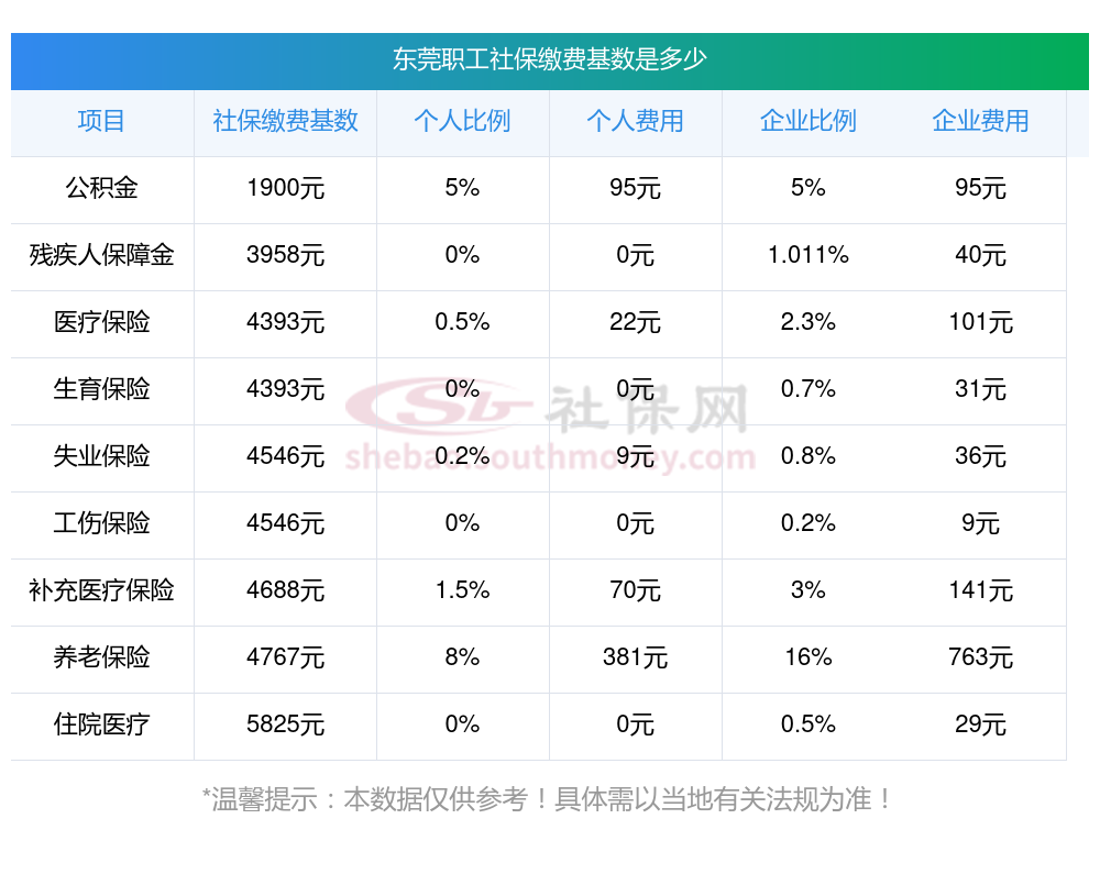 2025年东莞社保费用明细表,个人要交多少钱?