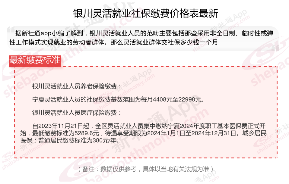 一、2024年银川灵活就业社保缴费标准表 银川灵活就业社保多少钱一个月?