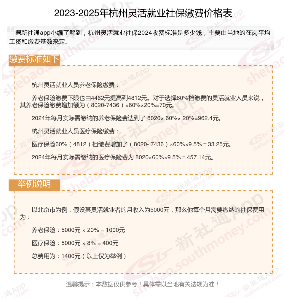 一、2025年杭州灵活就业社保缴费标准表 2025年杭州灵活就业社保多少钱一个月?