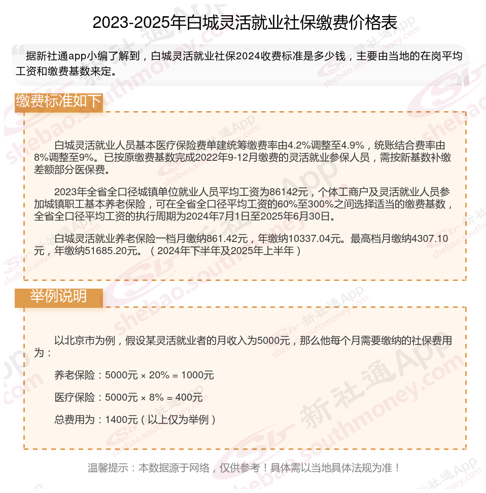 一、2024-2025年白城灵活就业社保缴费标准表 白城灵活就业社保多少钱一个月?