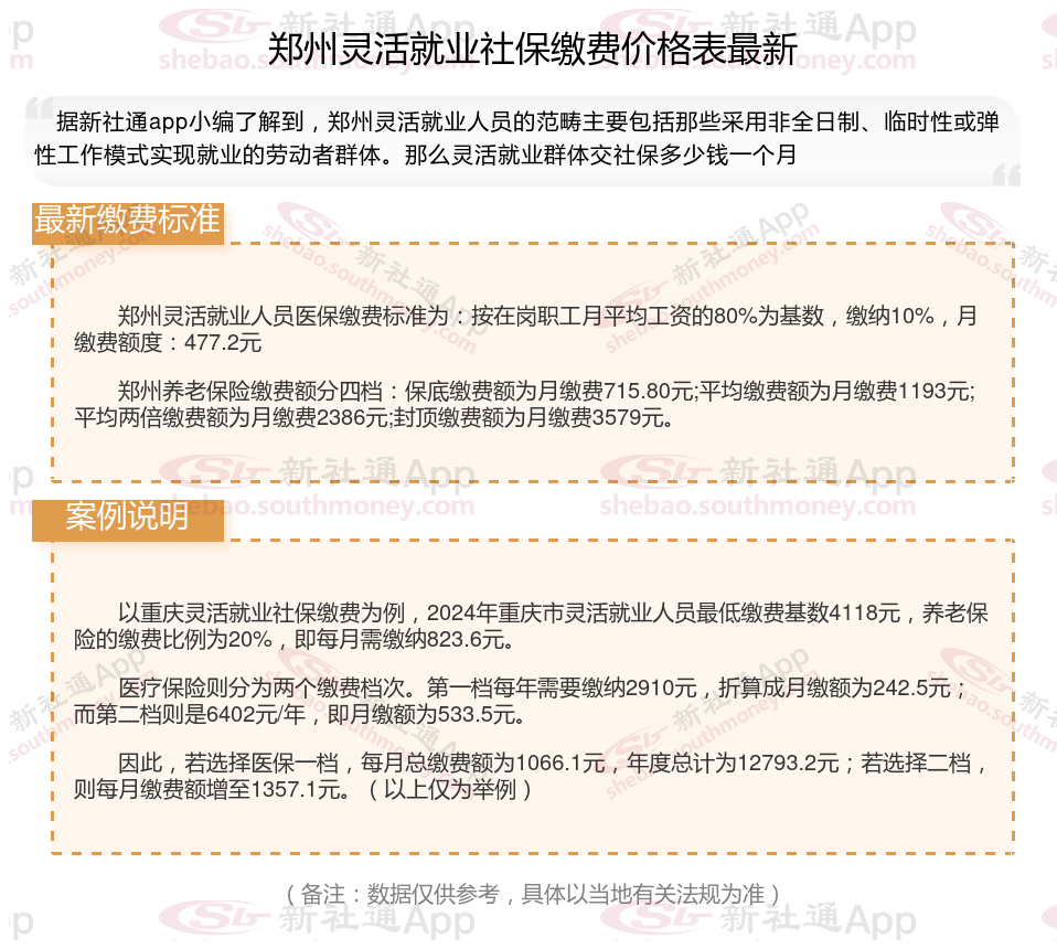 一、2024年郑州灵活就业社保缴费标准表 郑州灵活就业社保多少钱一个月?