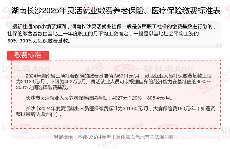 2025年湖南长沙灵活就业人员社保需要交多少钱?随着经济社会的不断发展,灵活就业群体也日益壮大,其社保缴费问题也愈发受到关注。接下来随新社通APP小编一起来看看灵活就业群体社保缴费问题吧。