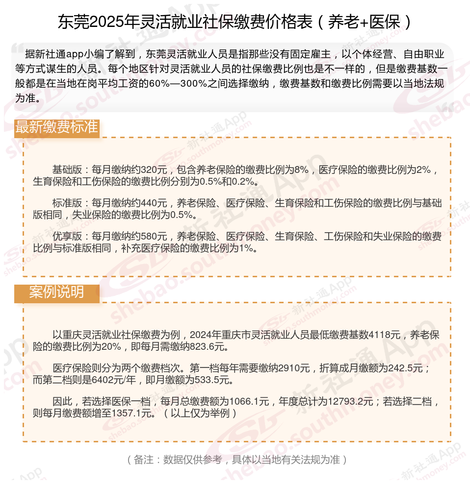 二、2025年东莞灵活就业社保缴费标准表 东莞灵活就业社保多少钱一个月?