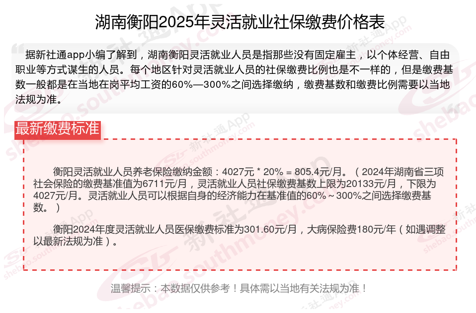 以上就是湖南衡阳灵活就业社保缴费的全部内容,数据及内容供参考!希望对你有帮助,欢迎关注新社通解锁更多社保专业资讯。