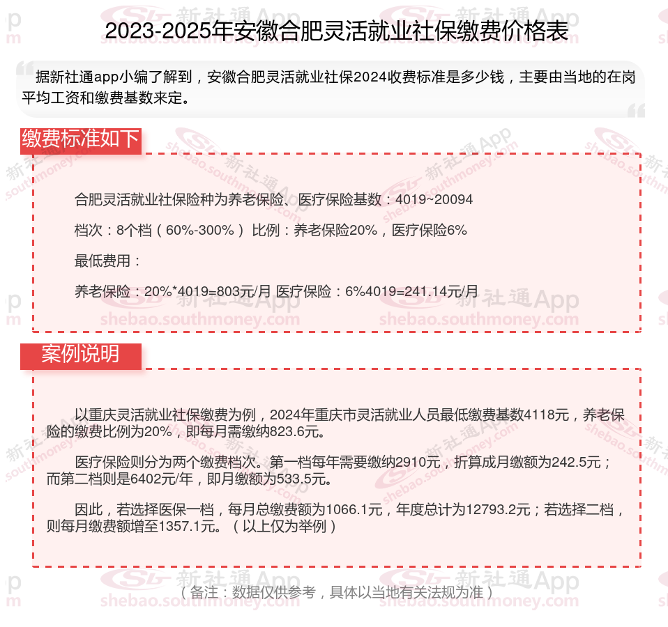 以上就是安徽合肥灵活就业社保缴费的全部内容,数据及内容供参考!希望对你有帮助,欢迎关注新社通app解锁更多社保专业资讯。