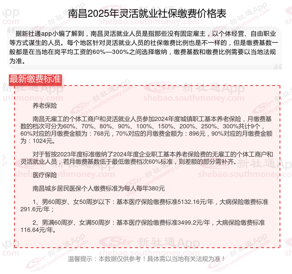 以上就是南昌灵活就业社保缴费的全部内容,数据及内容供参考!希望对你有帮助,欢迎关注新社通app解锁更多社保专业资讯。