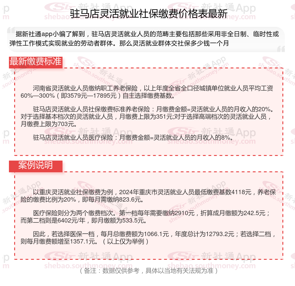 以上就是带来驻马店灵活就业社保缴费标准相关知识,内容供参考,希望对你有帮助,欢迎关注/下载新社通APP解锁更多社保专业资讯。