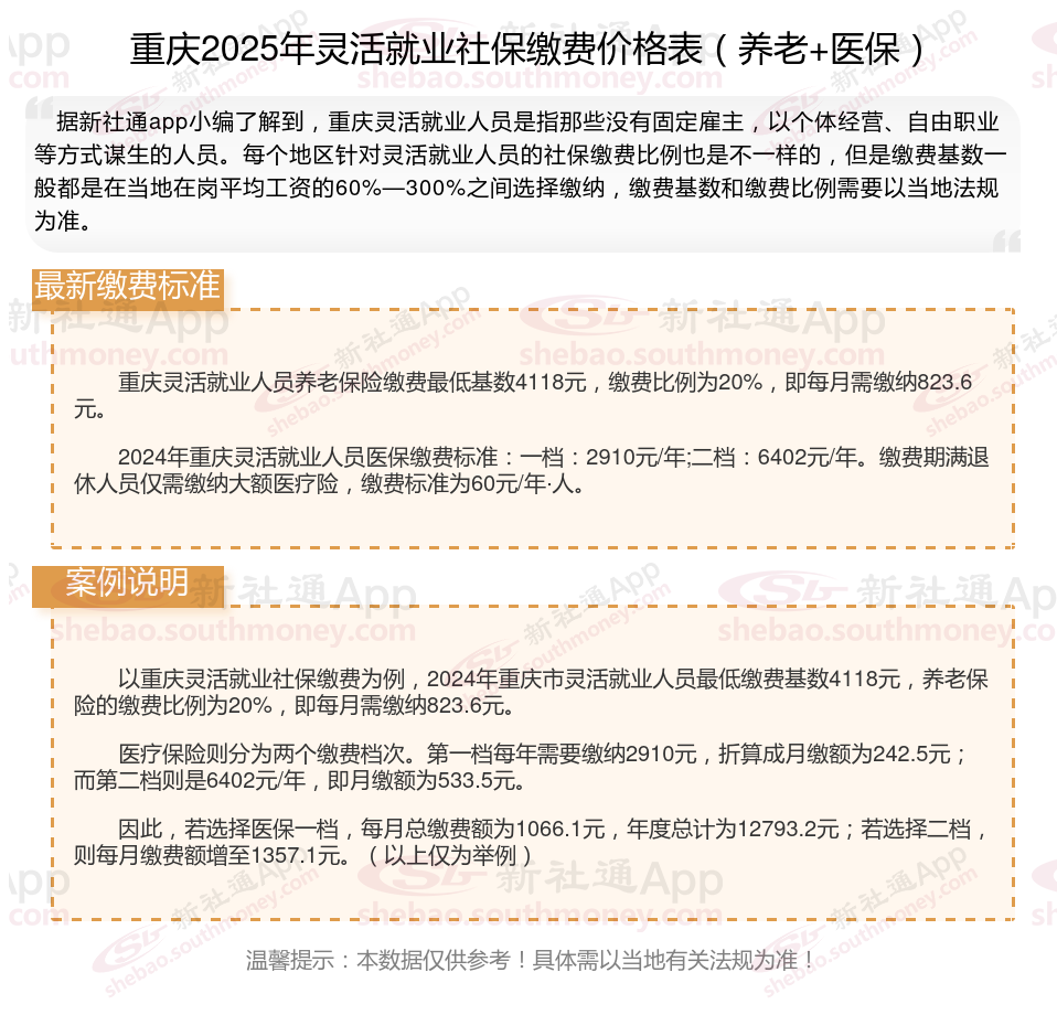 以上就是重庆灵活就业社保缴费的全部内容,数据及内容供参考!希望对你有帮助,欢迎关注新社通app解锁更多社保专业资讯。