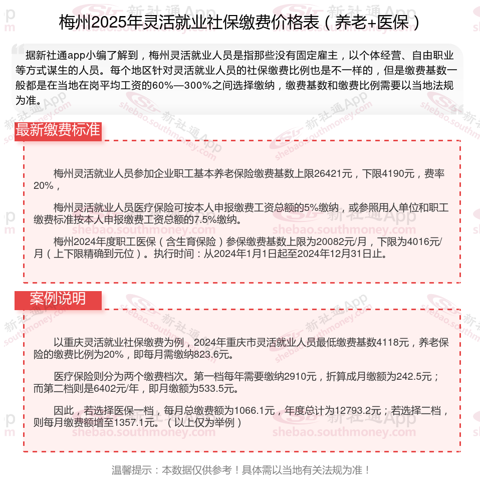三、2025年梅州灵活就业社保缴费基数及比例最新消息
