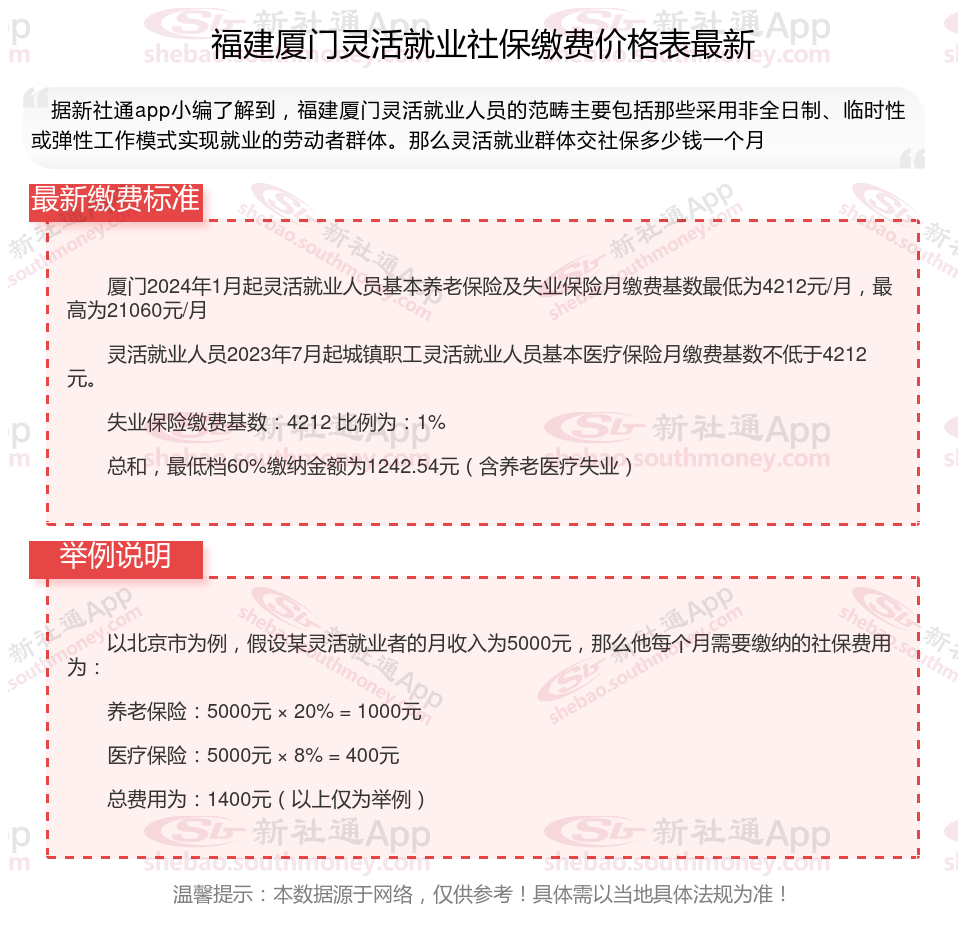 一、2024年福建厦门灵活就业社保缴费标准表 福建厦门灵活就业社保多少钱一个月?