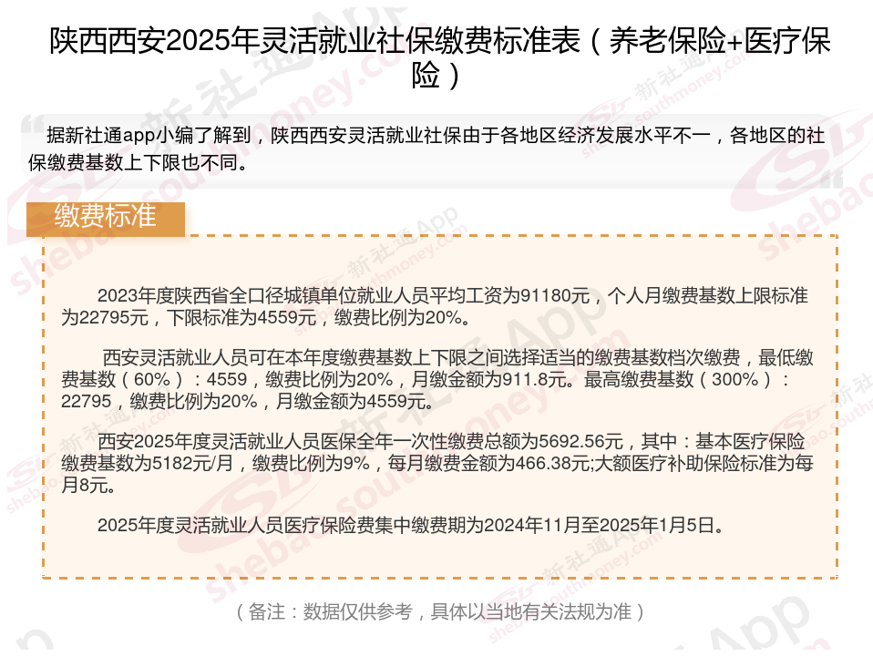 以上就是陕西西安灵活就业社保缴费的全部内容,数据及内容供参考!希望对你有帮助,欢迎关注新社通app解锁更多社保专业资讯。
