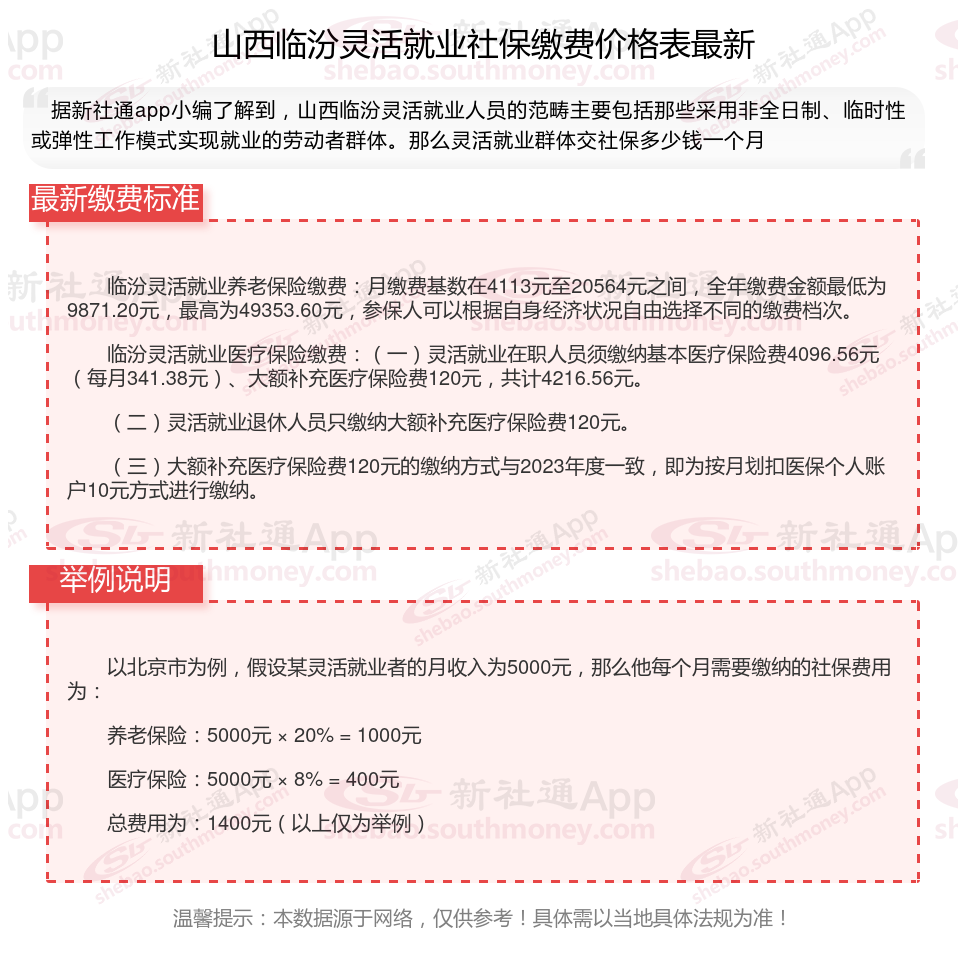 以上就是山西临汾灵活就业社保缴费的全部内容,数据及内容供参考!希望对你有帮助,欢迎关注新社通app解锁更多社保专业资讯。