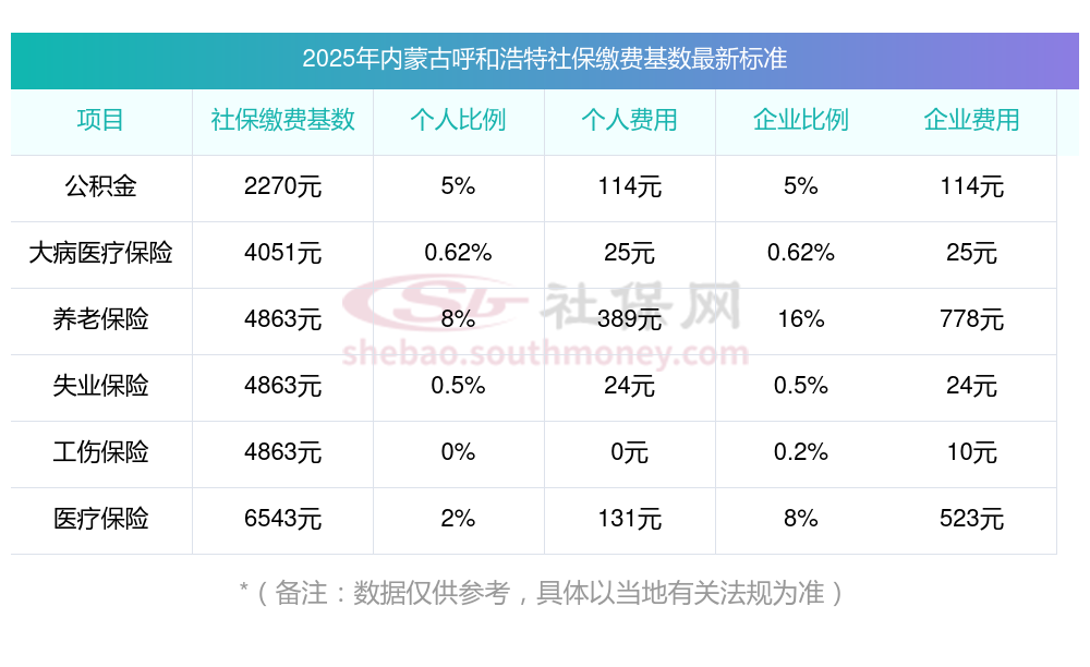 据新社通app显示,内蒙古呼和浩特社保缴费基数2025年标准,(社保最低一个月要交多少钱)内蒙古呼和浩特社保费用如下: