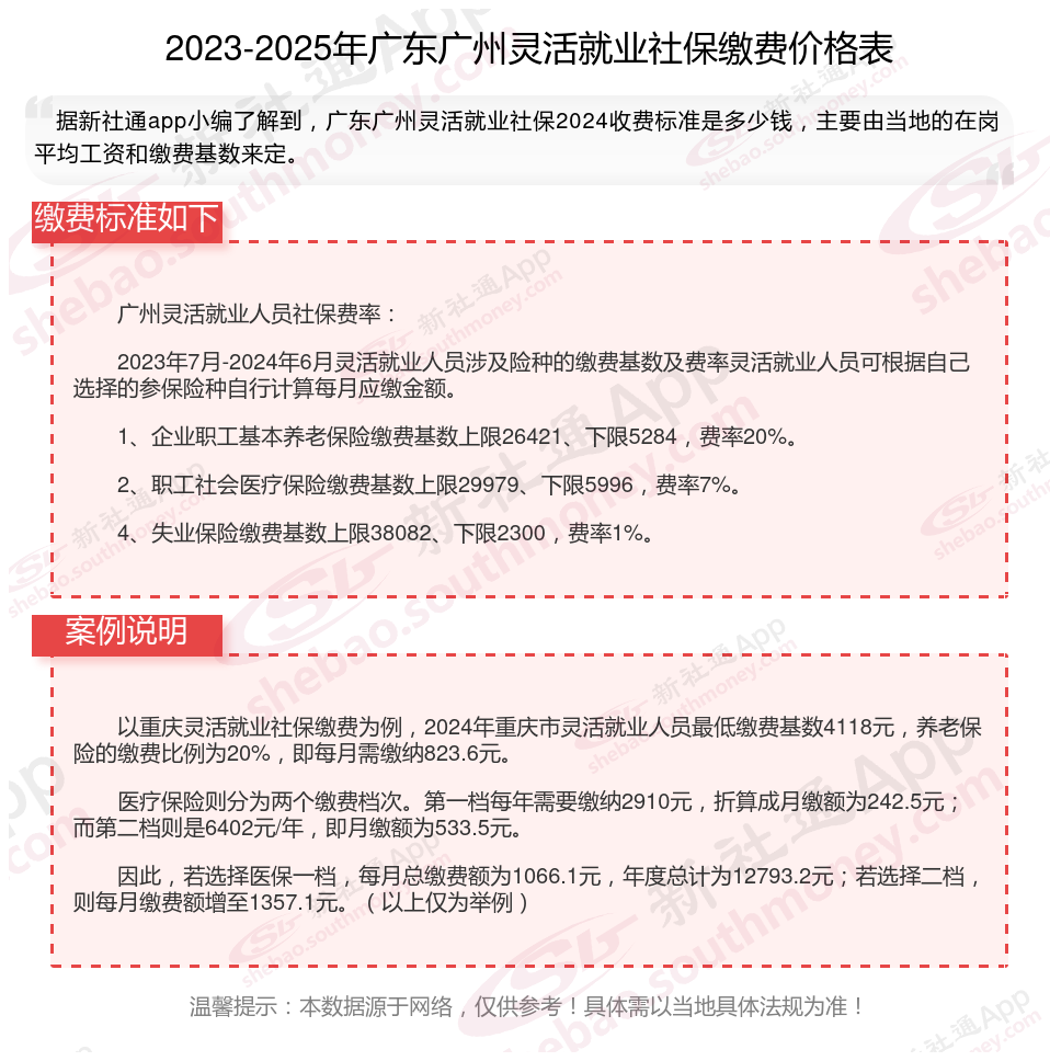 二、广东广州2024年灵活就业社保缴费基数、比例最新消息