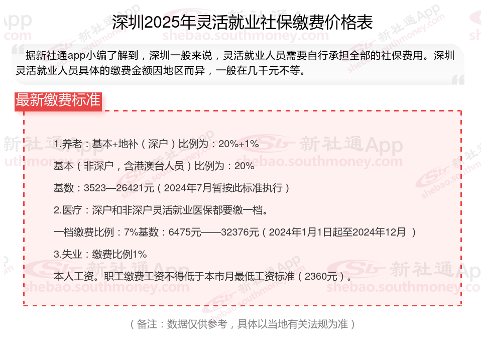 随着经济社会的不断发展,灵活就业群体日益壮大,其社保缴费问题也愈发受到关注。那么2025年深圳灵活就业人员社保需要交多少钱,缴费比例是多少?下面随新社通小编一起来看看。