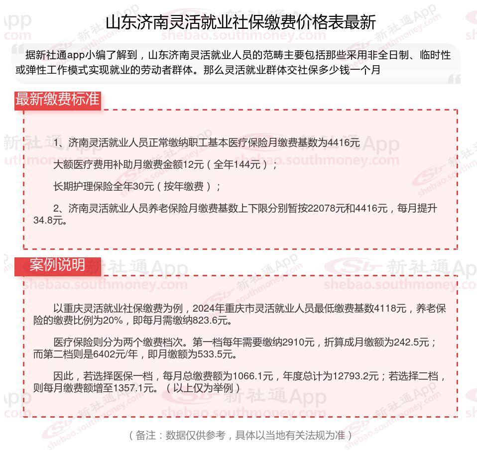 一、2024年山东济南灵活就业社保缴费基数、比例最新消息