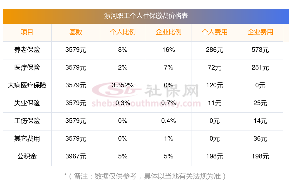 目前该漯河社保缴费基数最新参考为3579.00。(数据仅供参考)