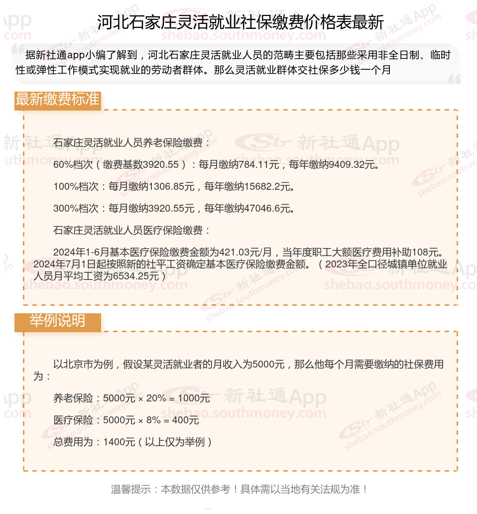 提示:河北石家庄灵活就业人员每个月的缴费压力还是比较大的,每个月的社保费用都是千元,缴费档次越高,灵活就业人员要缴纳的费用也越多。