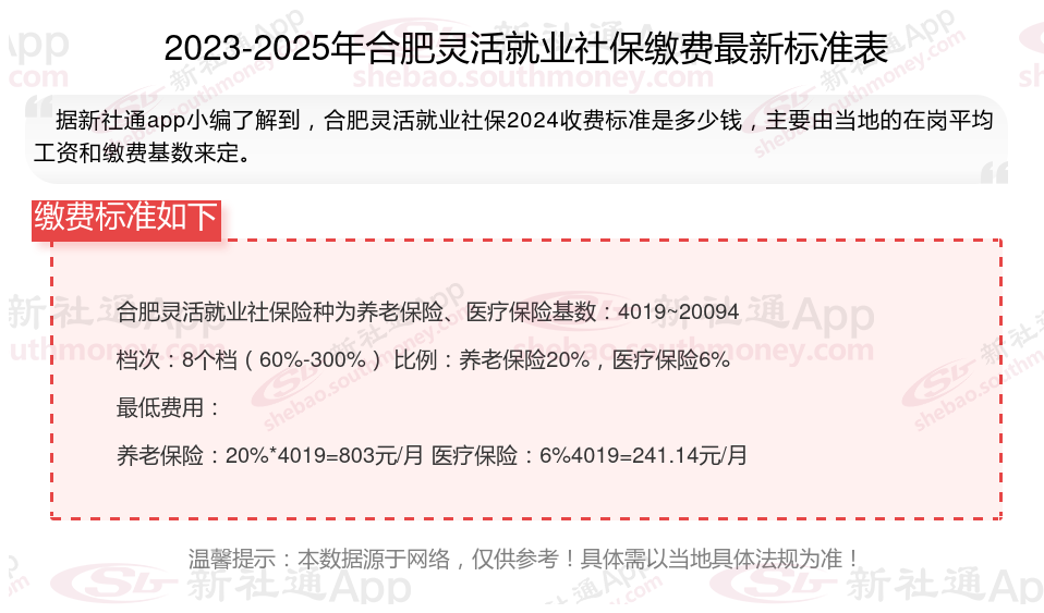 以上就是合肥灵活就业社保缴费的全部内容,数据及内容供参考!希望对你有帮助,欢迎关注新社通app解锁更多社保专业资讯。