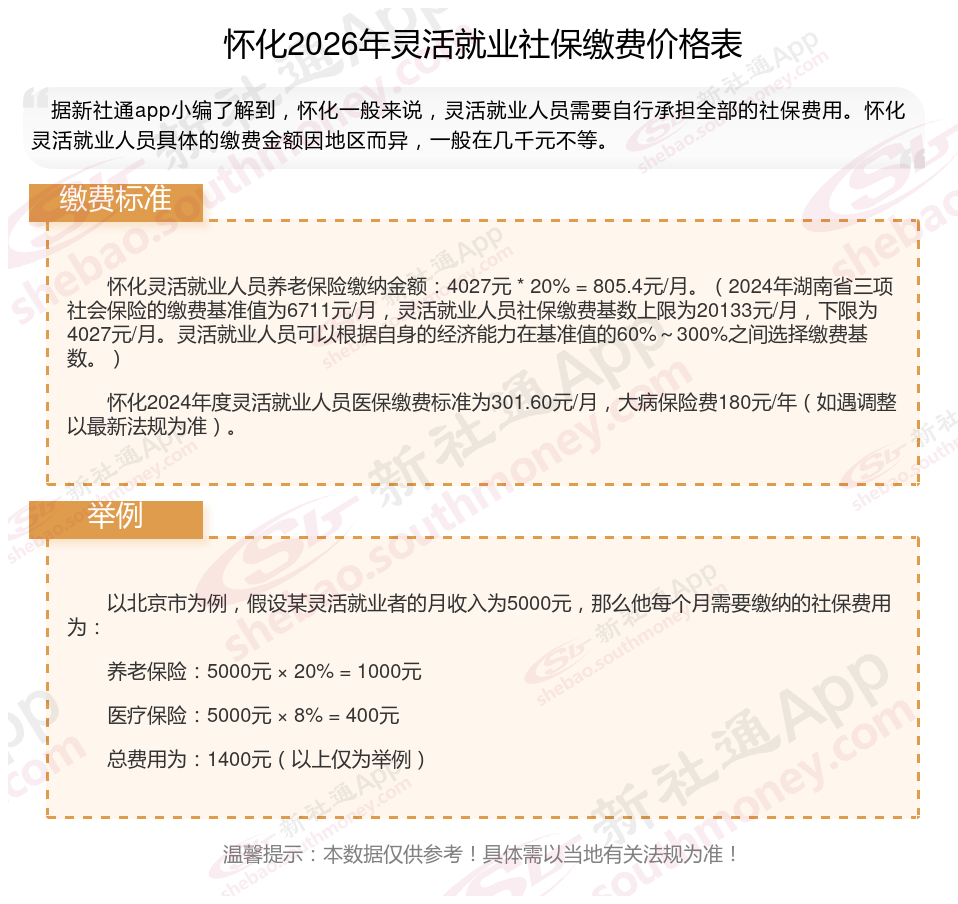怀化2026年灵活就业社保缴费基数、比例最新消息