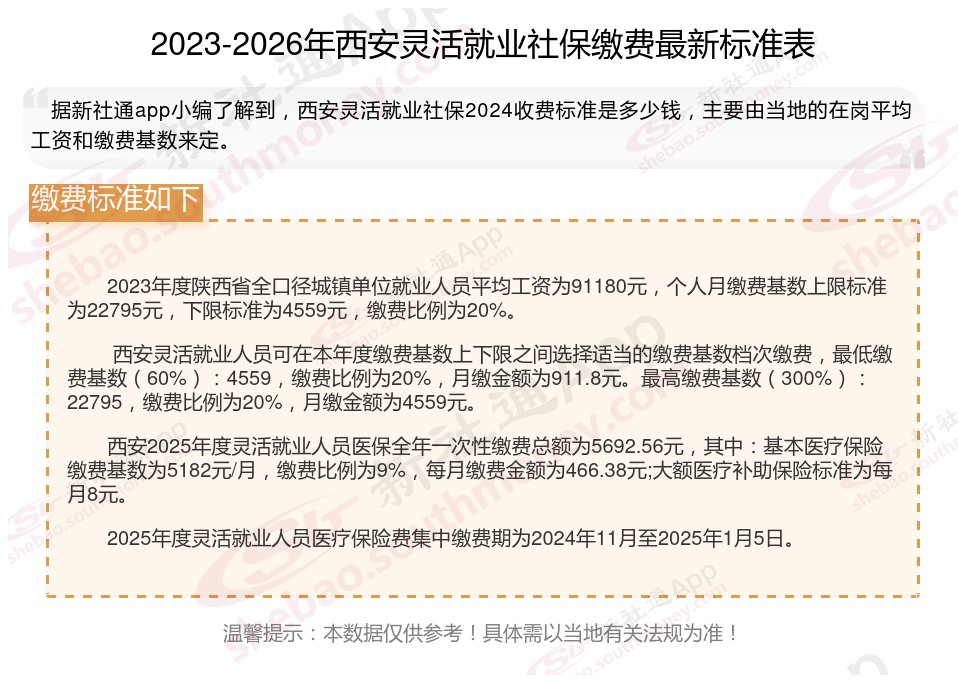 三、2026年西安灵活就业社保缴费基数及比例最新消息