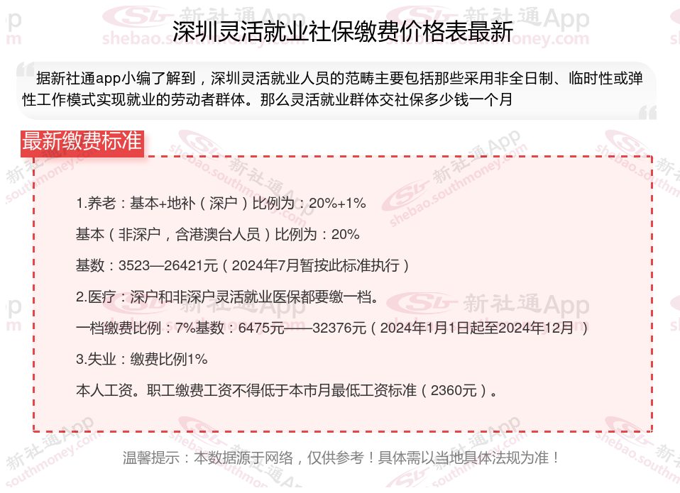 一、2024年深圳灵活就业社保缴费标准表 深圳灵活就业社保多少钱一个月?