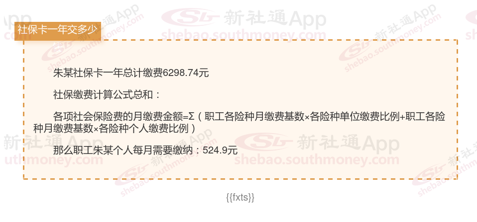 (2)社保卡每年交多少?以朱某职工社保为例: