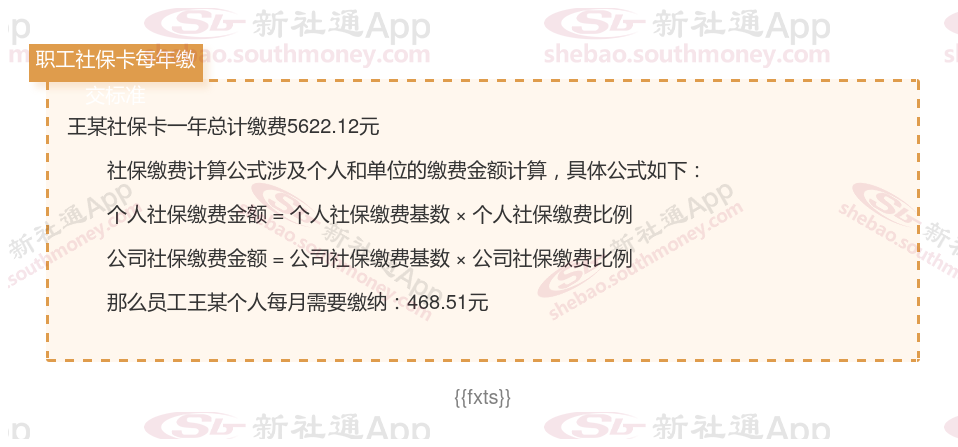 社保卡每年需要缴纳多少钱?以员工王某个人社保卡缴费标准为例子: