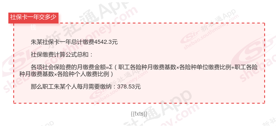 以上就是朱某职工社保卡一年缴费金额的全部内容,希望对您有帮助,欢迎关注新社通app解锁更多社保专业资讯。