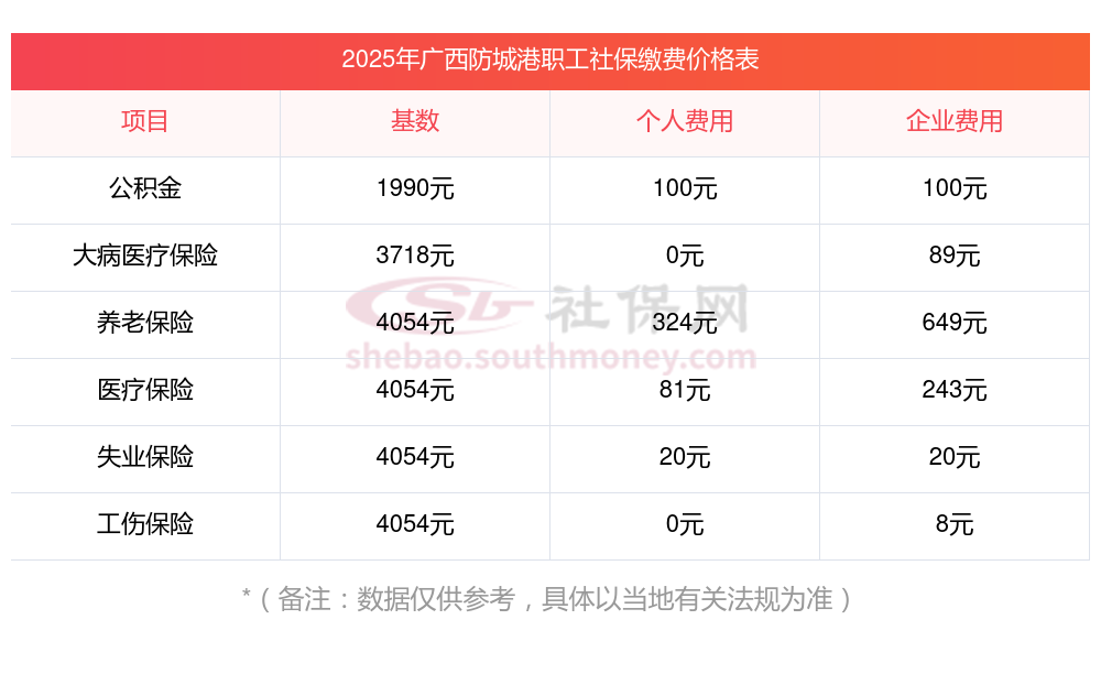 社保缴费,其本质是个人和单位按照法律,定期向社会保险体系支付费用的行为。接下来看看,广西防城港社保需要缴费多少钱?2024-2025年广西防城港社保缴费档次表??,如下: