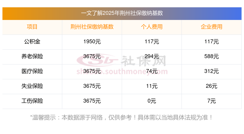 直白来讲,社保缴费就是个人或单位遵循法律,参与社会保险并缴纳对应费用的行为。接下来看看,荆州社保需要缴费多少钱?2024-2025年荆州社保缴费档次表??,如下: