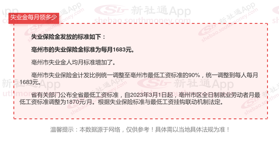 在亳州失业了怎么办?告诉你每月去领这笔钱!具体有多少呢?因为每个人是不一样的。随新社通小编来了解一下。