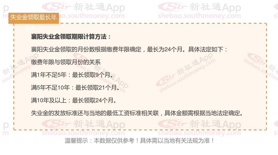 比如:襄阳可以领取失业保险金的期限表