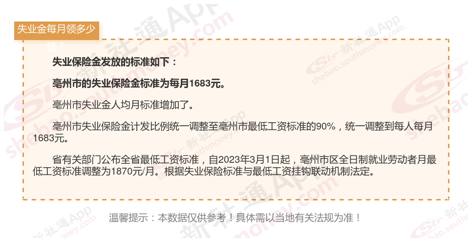 在安徽亳州失业了怎么办?告诉你每月去领这笔钱!具体有多少呢?因为每个人是不一样的。随新社通小编来了解一下。