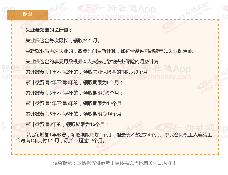 3.用人单位和本人累计缴费满1年不足5年的,领取失业保险金的期限最长为12个月;累计缴费满5年不足10年的,领取期限最长为18个月;累计缴费10年以上的,领取期限最长为24个月。