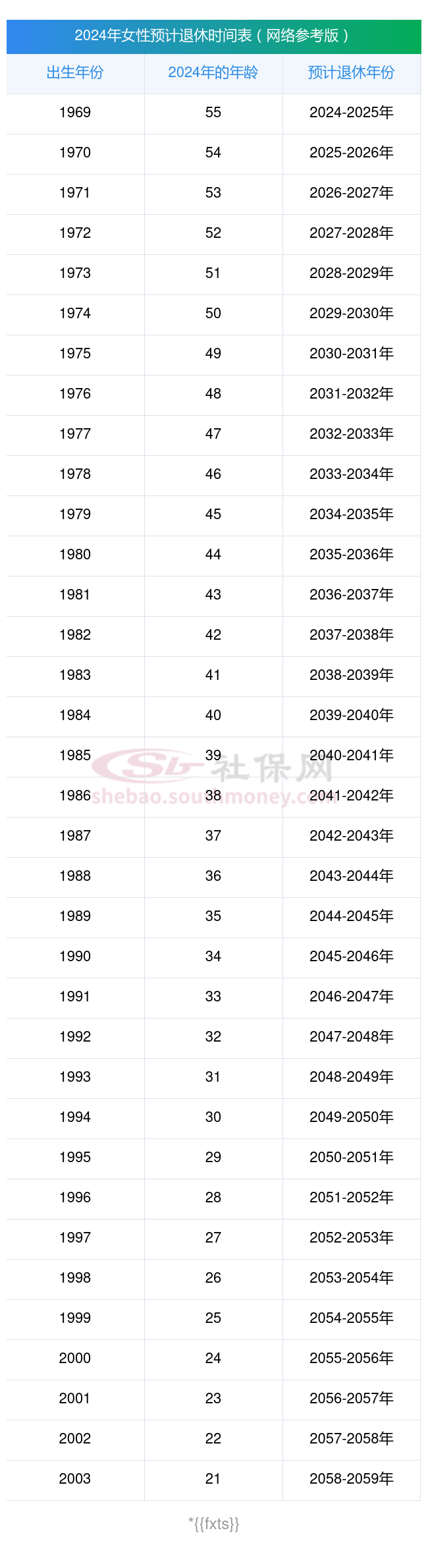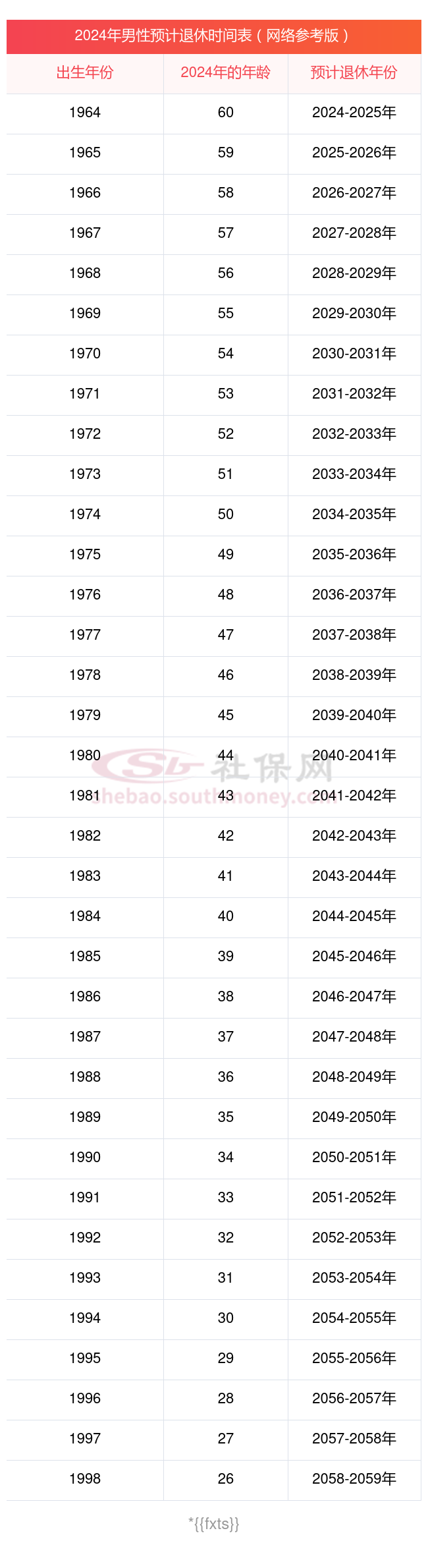 有网友整理了2024年最新男女退休年龄时间表(仅供参考)