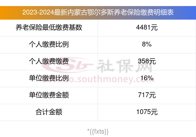 2024内蒙古鄂尔多斯职工养老保险金计算公式如下: