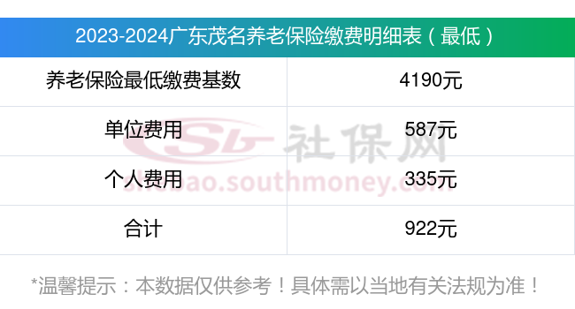 广东茂名养老保险缴费基数2023-2024最新标准如下