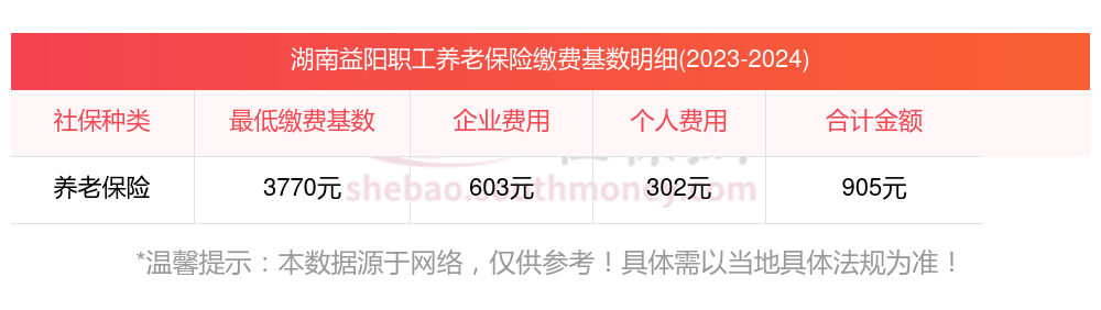 湖南益阳养老保险缴费基数2023年最新标准(最低)